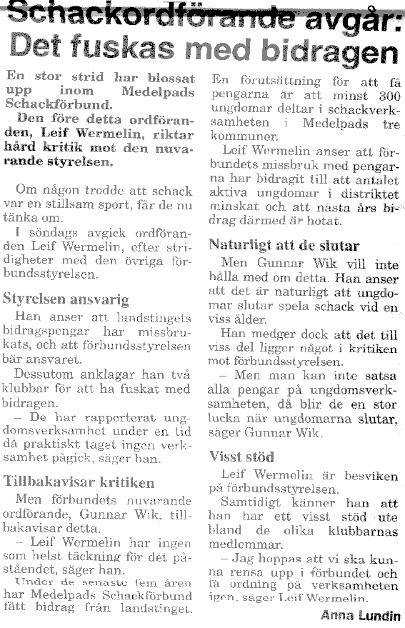 Medelpads Schackförbund efter STYRESMANS kampanj mot